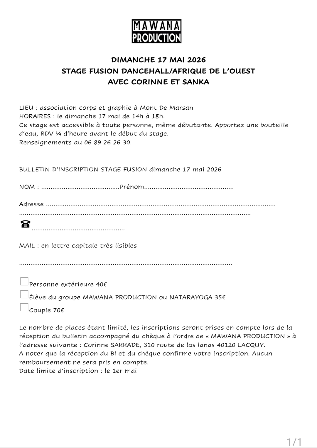Quand le dancehall rencontre l’Afrique de l’Ouest. L’association Mawana production donne des cours de danse africaine et de percussions et organise un stage de danse fusion le 17 mai à Mont de Marsan.